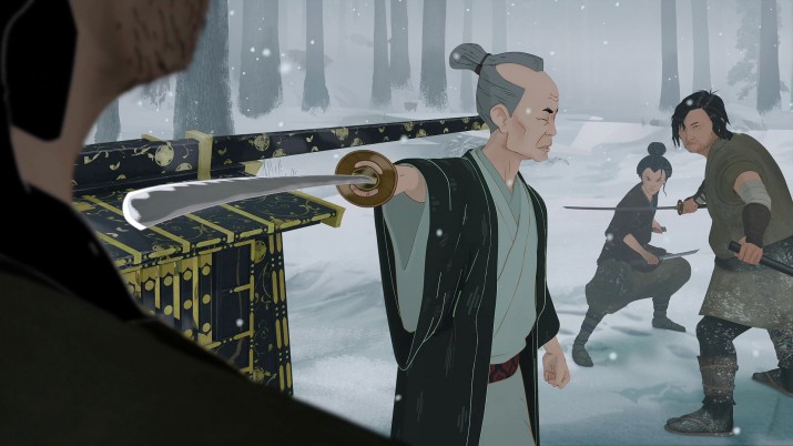 Для воплощения их амбициозной концепции Netflix познакомил авторов с крутой художницей Джейн Ву, ранее создававшей раскадровки для Marvel («Мстители», «Капитан Америка», «Стражи Галактики»). Из ее недавних работ можно подметить «Дом дракона» и ремейк «Мулан», а прошлым летом Variety упомянул ее в числе аниматоров, к которым стоит присмотреться. Ву всегда выделял скрупулезный подход к раскадровке боев. Будучи знатоком восточных единоборств, она сама давала уроки художникам, работавшим над «Голубоглазым самураем». К тому же она пригласила к работе каскадеров, которые проигрывали каждую битву от начала до конца, прежде чем команда начинала создавать ее средствами анимации. Эти заморочки принесли свои плоды: хореография драк в «Самурае» — отдельный вид искусства. Эпичные и изощренные методы расчленения врагов (вылетевший изо рта зуб в глазном яблоке или рубилово на одиноком утесе) тут незабываемы. При этом, хоть в мультфильме кровь льется рекой, Ву и ее постановщики никогда бессмысленно этим не злоупотребляют.
