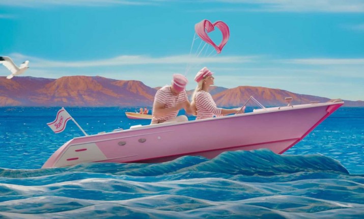 Кен здесь снова оттеняет Барби, и такие скоординированные образы почти делают их похожими на членов военно-морского флота Барбиленда (если бы такой существовал во вселенной фильма), а нежно-розовые матросские фуражки запоминаются надолго, несмотря на то что мелькают в кадре недолго. Розовая лодка с флагом Барби отлично дополняет лук.