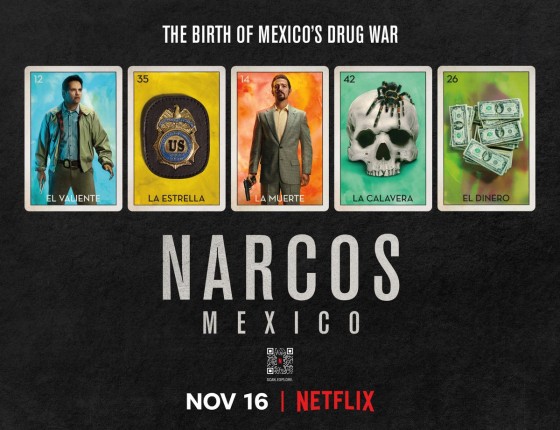 Онлайн-сервис Neftlix представил постеры к первому сезону спин-оффа «Барыг», который рассказывает о начале противостояния УБН и мексиканских наркобаронов. С помощью промоматериалов создатели сериала решили научить зрителей парочке испанских слов, ведь в оригинале персонажи разговаривают в основном на официальном языке Мексики.