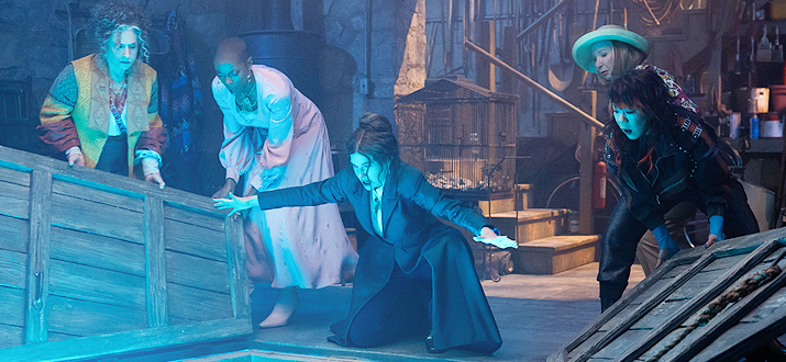 Надписи в титрах: поисковый запрос «Дорога ведь», в подсказках песня; Добро пожаловать в Салем, основанный в 1626 г.; Современное ведьмовство; на фото с вороном подчёркнуто «Ваши скрытые врата», газетные выдержки: «Обвининения в …лдовстве: … преследования», «…едьмы положили конец засухе заклинанием дождя», «…зучая аномалию», «… дом», «Почти уничт…»; на фото с черепом: «Чёрная м…»; на фото Дороти и льва – «Коттон Мэзер и колдовство, пару заметок от мистера Апхема , его ответ»; у Лизы Симпсон – «Колдовство и магия, от самых достоверных источников»; фото с 3-мя треугольниками – слова песни: «Дикая ночь, укажи им путь» (правда в оригинале нету «им»), а справа знаки зодиака – близнецы, рак, лев; фотографии – «средневековая ведьма»; остальное вроде писал под прошлой серией